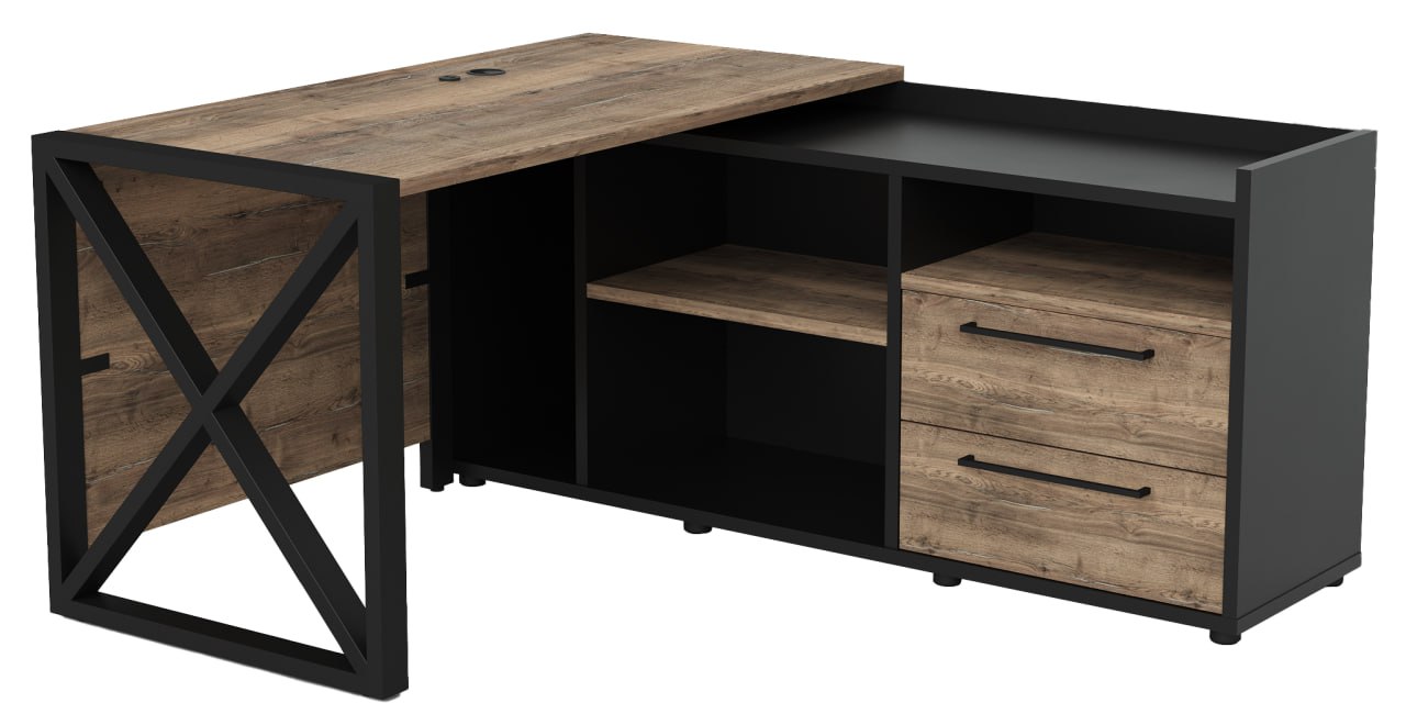 Металлические элементы придают столам прочность и долговечность, а текстура дерева на основных элементах стола добавляет теплоту и уют. А применение черной металлической лицевой фурнитуры добавляет ей ещё большую функциональность и индивидуальность. Столешница стола выполнена из ЛДСП 25мм. Каркас и фасады греденции сделаны из 16 и 25 мм ЛДСП. Фурнитура плавного закрывания. Металлические элементы изготовлены из трубы сечения 60х30 мм.